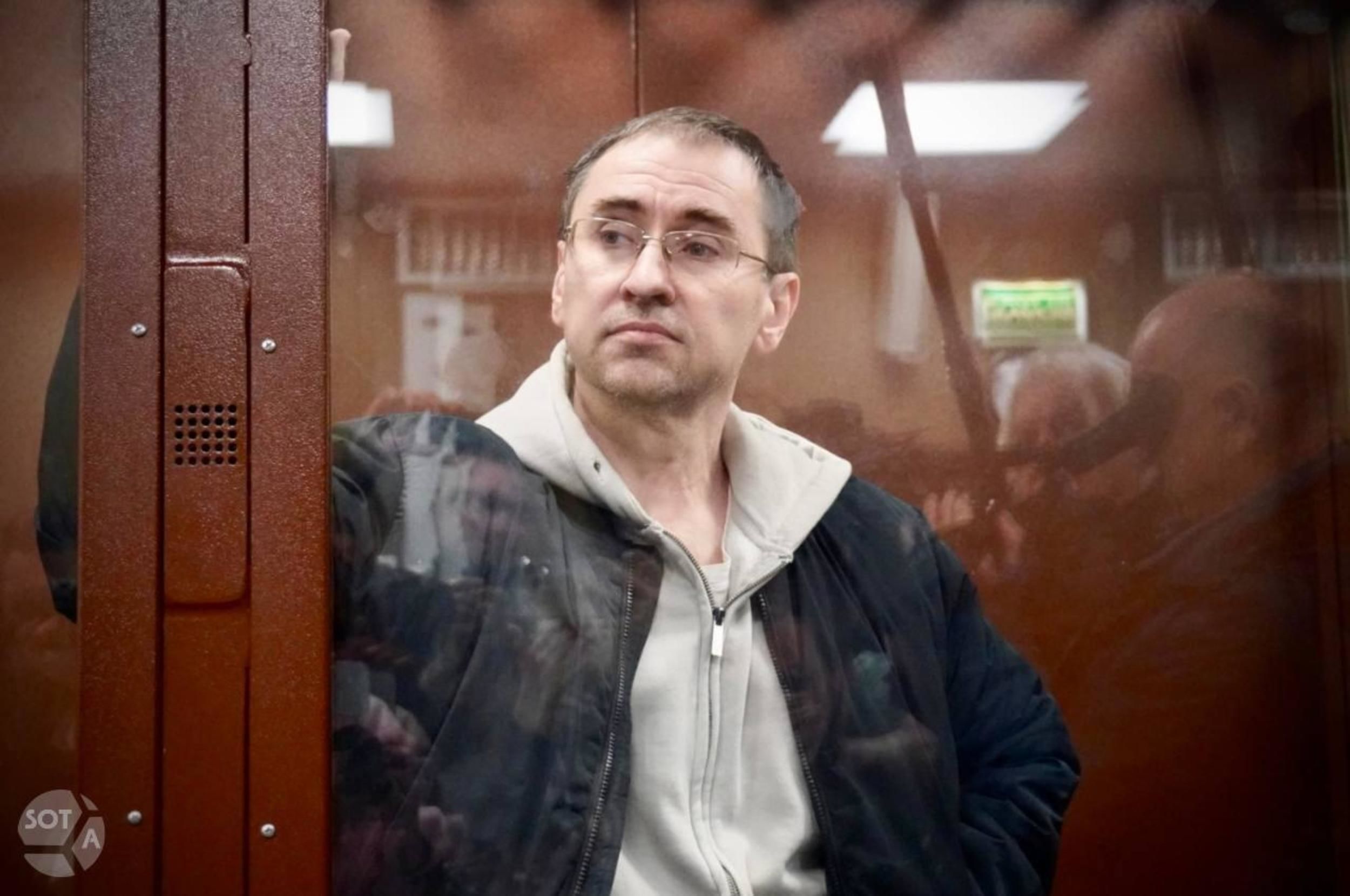 Na fotografii: Alexandr Skobov u soudu, 1. dubna 2026. Foto: SOTA Vision.
