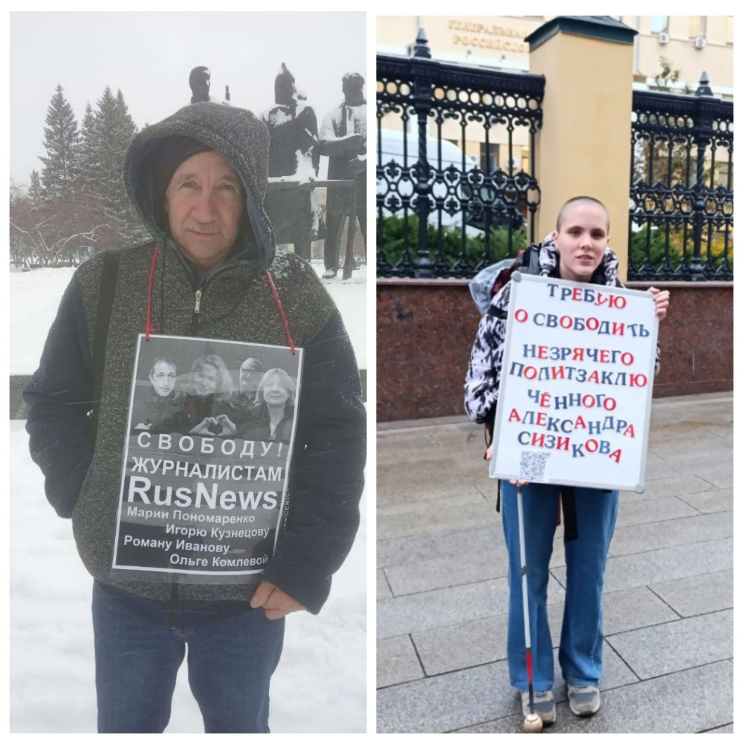 Praxe ukazuje, že veřejné vyjádření podpory konkrétním politickým vězňům je o něco bezpečnější – v těchto případech policie aktivistům občas ani nepřekáží. „Osamocené protesty“ tohoto typu se v ruských městech proto konají poměrně často. Například 8. listopadu vyrazil do centra Novosibirsku aktivista jménem Vasilij, kde s transparentem požadujícím propuštění několika novinářů stál více než hodinu. Nevidomá obyvatelka Moskvy Oksana Osadčaja pak opakovaně požaduje v centru města propuštění pro nevidomého krymského Tatara Oleksandra Sizikova.